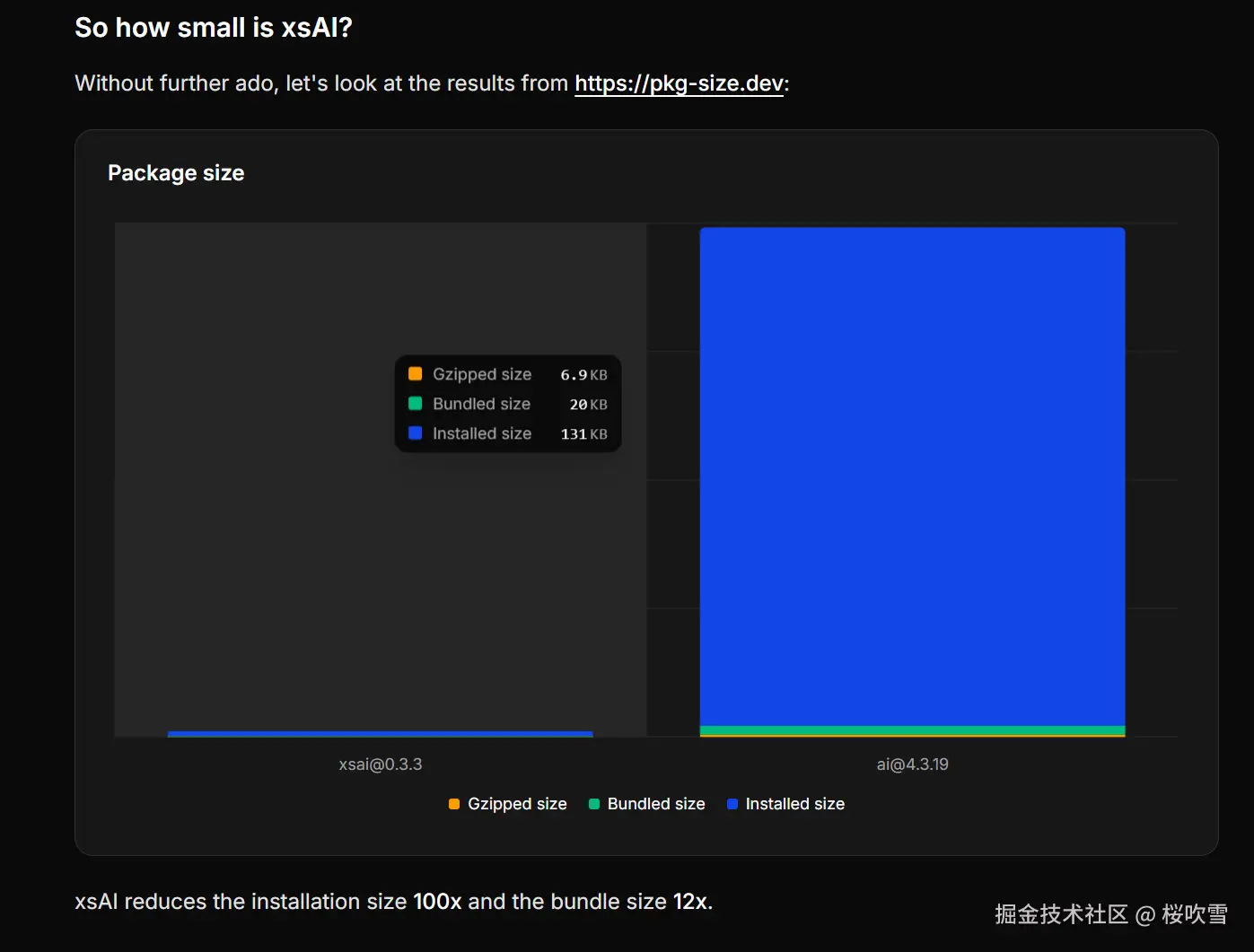 既然是手搓的话,咱们就先不用前面用到的Langchain.js了(手搓完再展示Langchain.js v1.0的createAgent),这里使用一个非常轻便的库:xsai,相对于Langchain.js动不动几十MB的安装依赖,xsai就要小很多了
