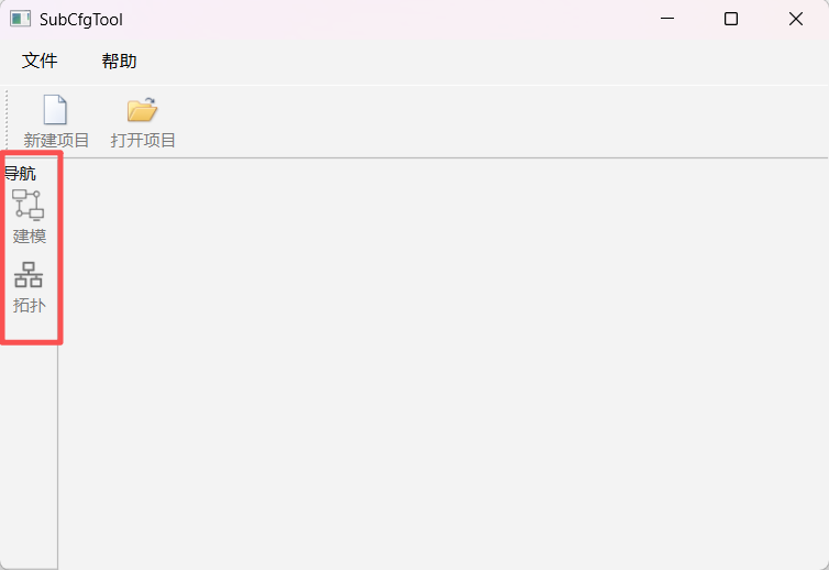 1、导航工具条上放置两个按钮,分别是"建模"、"拓扑",代表两个不同的功能模块;