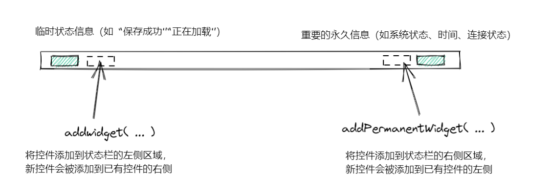 QStatusBar是主窗口底部的 "状态信息管理类",专门用于展示临时提示、永久信息或动态状态,是应用程序与用户的 "信息反馈窗口"。