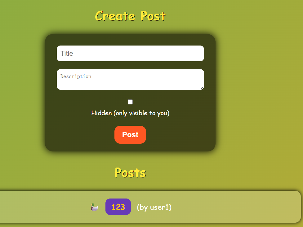 用户注册登录后,可以创建 Post ,创建好之后可以浏览,也可以通过点击 Report to Admin 触发机器人访问该Post