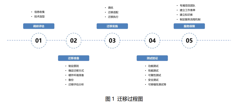 调研评估、迁移准备、迁移实施、测试验证、服务保障