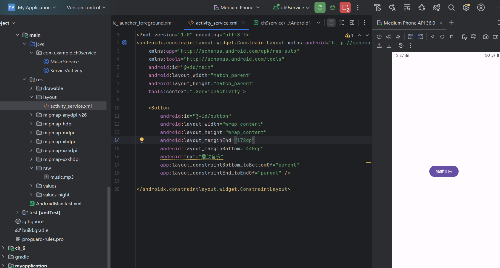 │ ├── raw // 音乐资源文件夹(存放music.mp3)