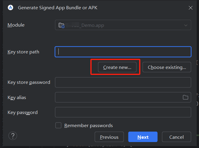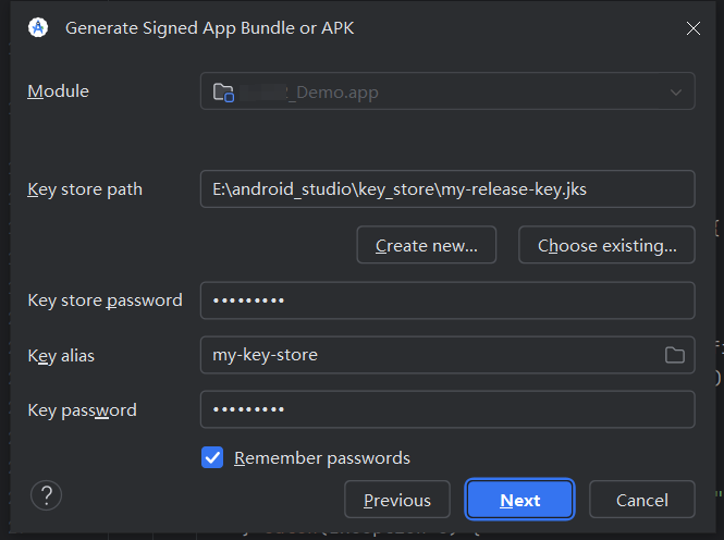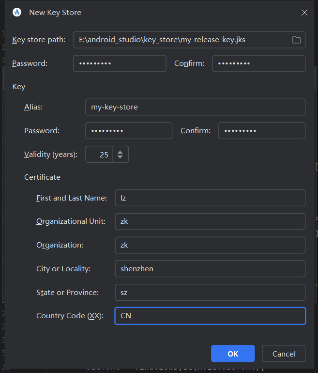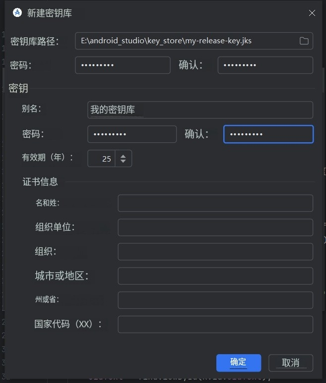 Key store path: .jks 文件存放位置,然后信息随便填填