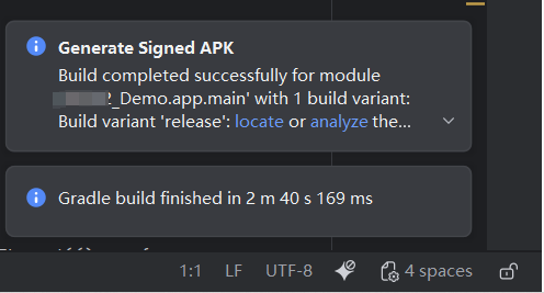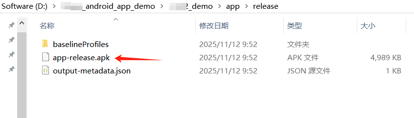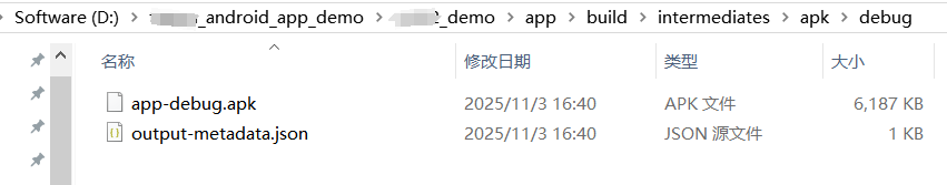 在源码路径的 app 目录里可找到生成的 apk,与 APK 一起生成的 .json`文件通常是签名信息文件,用于存储与 APK 相关的签名元数据。这个文件有助于验证 APK 是否已被正确签名,并且没有被篡改。