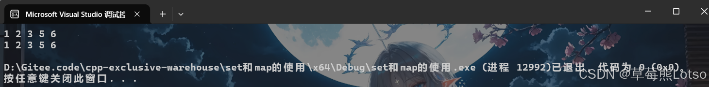 set 支持多种插入方式,插入后自动去重并按升序排列代码示例(注意看注释):