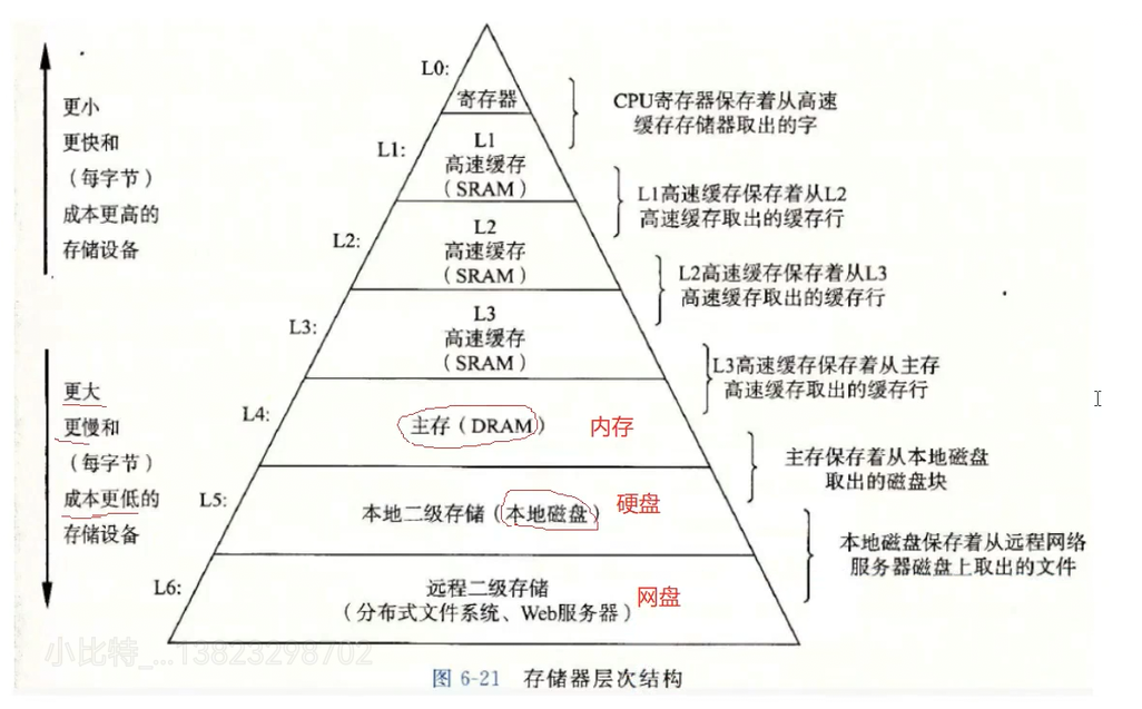 其他配置中也可分为寄存器(CPU)、高速缓存(分为多种)、远程二级存储(网盘)。