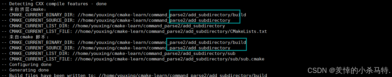 binary_dir:可选 。指定子目录的构建输出路径(相对于当前构建目录)。如不指定,则默认与source_dir同名。