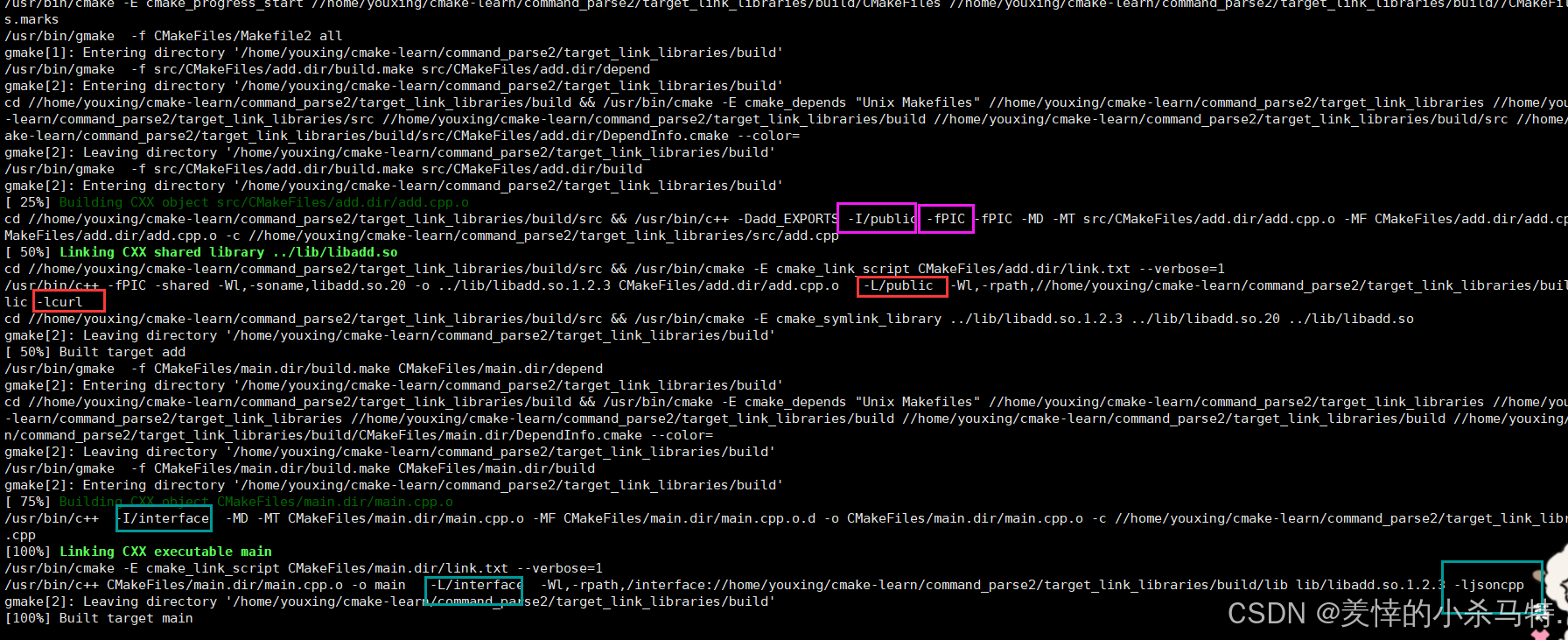 PUBLIC、PRIVATE、INTERFACE关键字(这里要知道PUBLIC=PRIVATE+INTERFACE根据它三设置目标对应的INCLUDE_DIRECTORIES与INTERFACE_INCLUDE_DIRECTORIES的属性变量值),可以将头文件路径自动传递给 链接该目标的其他目标,避免了手动管理全局路径的混乱。 -