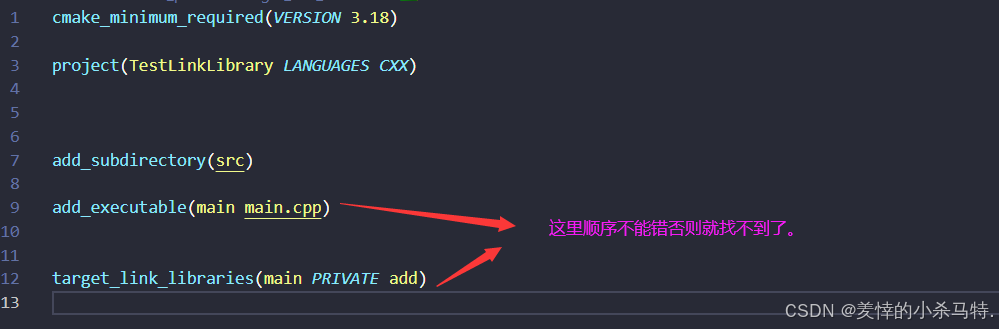 cmaketarget_link_libraries(<目标名> <PRIVATE|PUBLIC|INTERFACE> <库名>... [<PRIVATE|PUBLIC|INTERFACE> <库名>...]... )