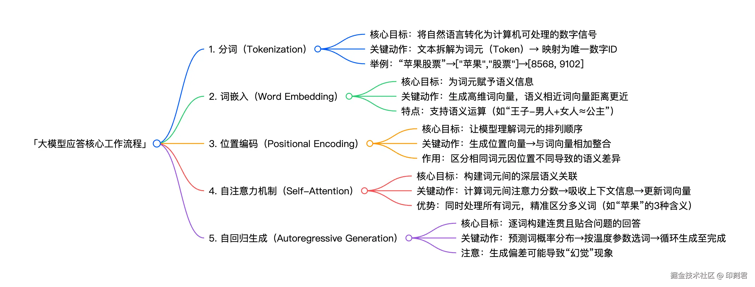 简单来说,大模型处理问题主要包含五个关键环节,分别是: