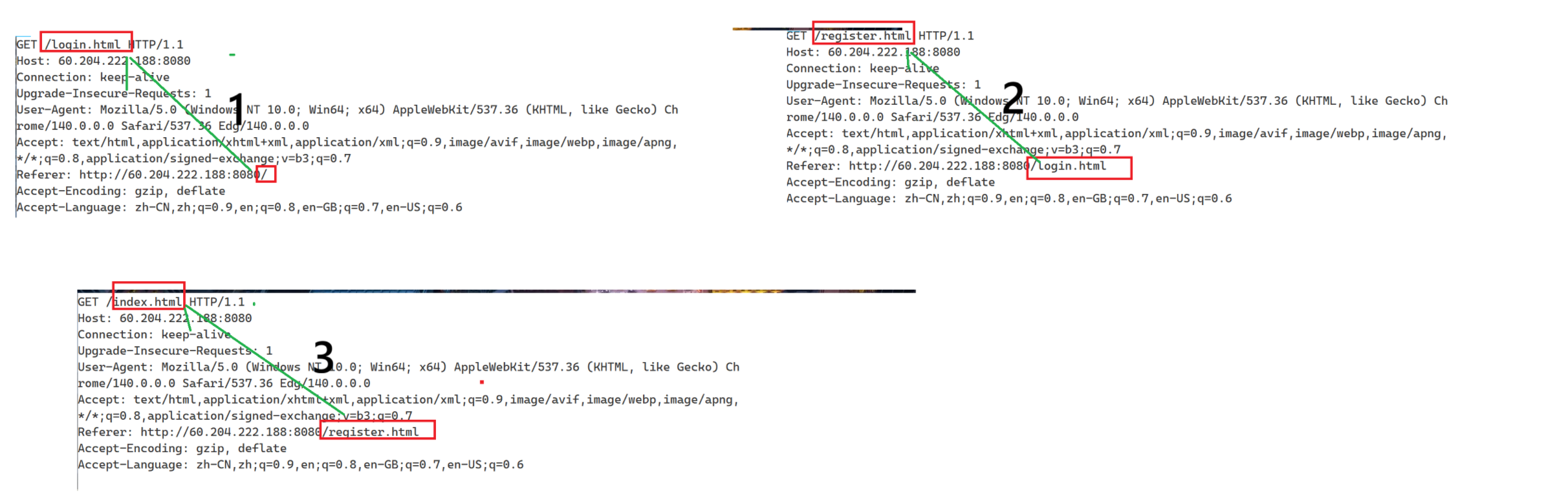 ✅Referer: 当前页面是从哪个页面跳转过来的,只有请求报头中有;假设我们有三个页面index.html,login.html,register.html,现在从跳转首页->登录->注册。