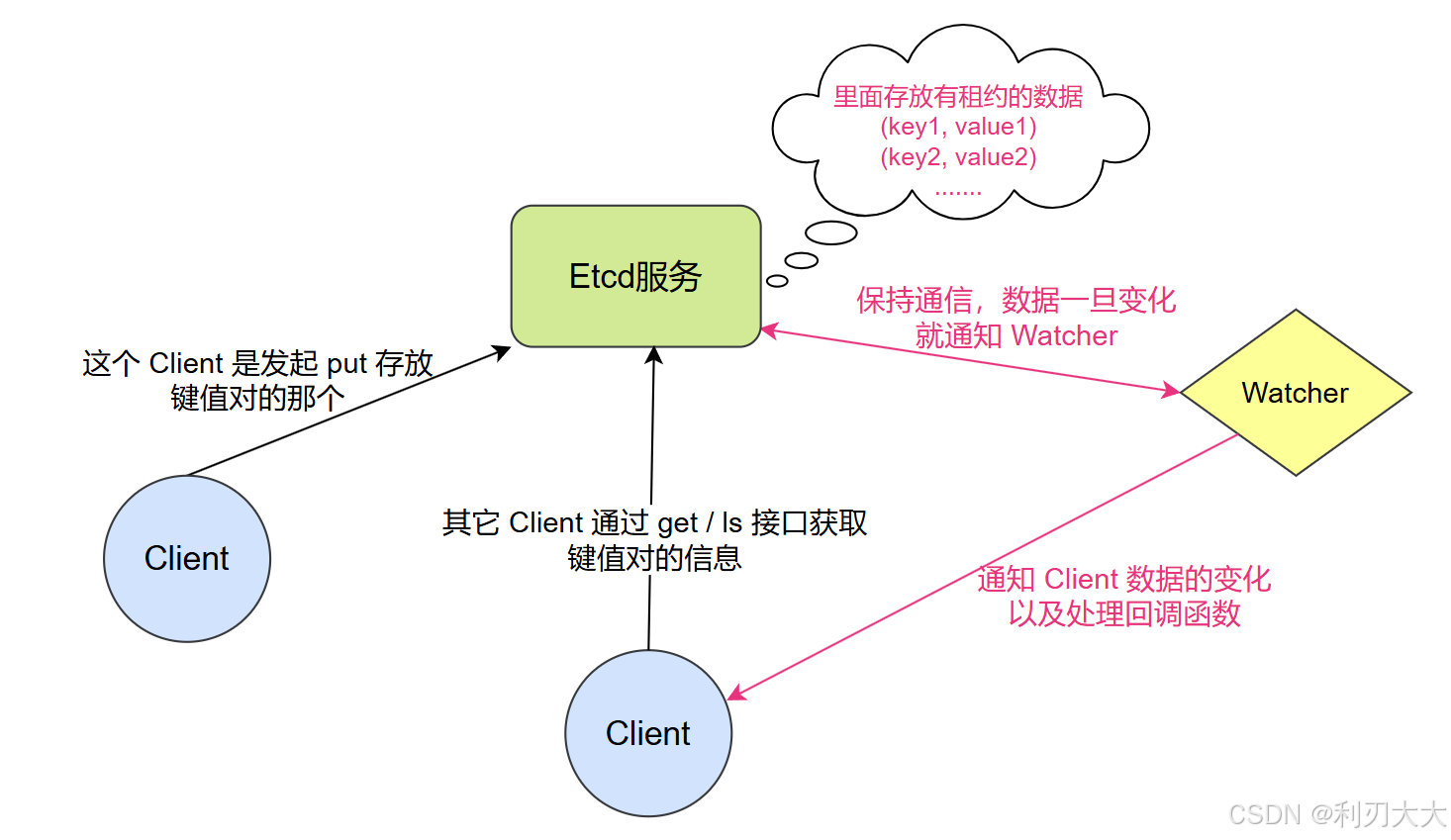 将 etcd 的操作全部封装起来,也不需要用户管理数据,只需要向外四个基础操作接口,然后由两个客户端类分别负责: