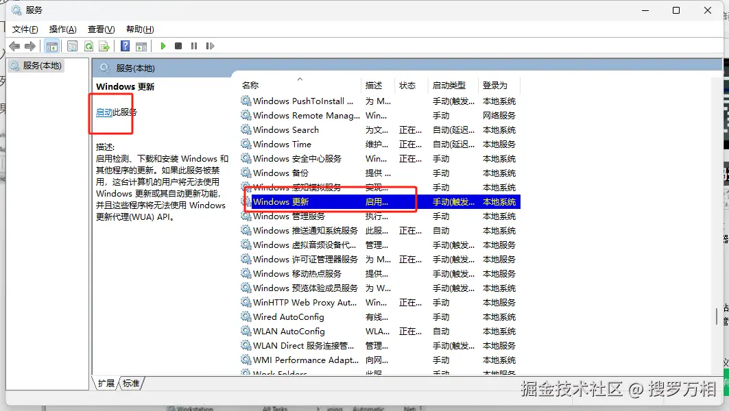 - 在列表中找到 Windows Update 服务,双击进入属性。