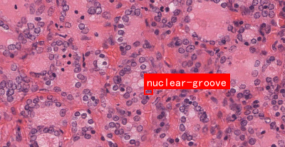 本数据集专注于甲状腺乳头状癌的病理特征识别与分类,包含五个关键类别:clear-nucleus(清亮核)、nuclear-groove(核沟)、nuclear-pseudoinclusions(核假包涵体)、papillary-architecture(乳头状结构)和psammona-bodies(砂砾体)。数据集采用YOLOv8格式,分为训练集、验证集和测试集,适用于目标检测任务。所有图像均为苏木精-伊红(HE)染色的组织病理学切片,展示了甲状腺乳头状癌的典型组织学特征。清亮核表现为细胞核因染色质稀疏而呈现透亮的形态;核沟是细胞核内纵向凹陷的结构;核假包涵体为胞浆成分陷入细胞核形成的类似包涵体的结构;乳头状结构是由上皮细胞构成的分支状或指状突起,向周围腔隙内延伸;砂砾体则表现为钙化的同心圆结构。这些特征是诊断甲状腺乳头状癌的重要依据,其中核沟、核假包涵体及清亮核具有高度特异性。数据集标注精确,为甲状腺乳头状癌的计算机辅助诊断提供了高质量的训练样本,有助于开发自动化病理图像分析系统,提高诊断效率和准确性。