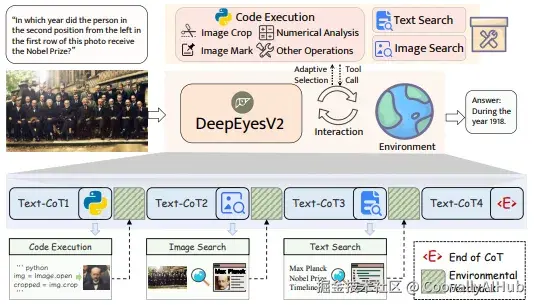 同样,小红书团队推出的DeepEyesV2多模态AI模型通过智能利用外部工具,在多项任务中超越了更大型的模型。