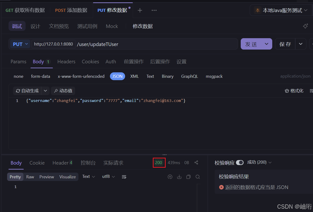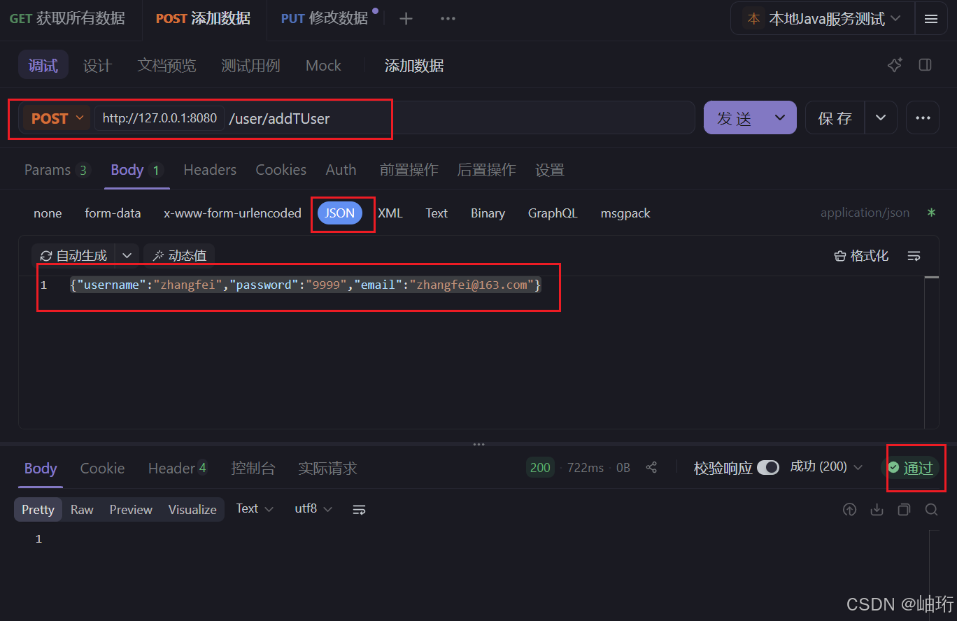 {"username":"zhangfei","password":"7777","email":"zhangfei@163.com"}