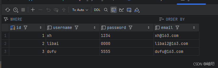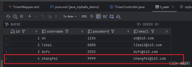 以下基于springboot项目,使用xml配置的方式实现对表数据的增删改查功能