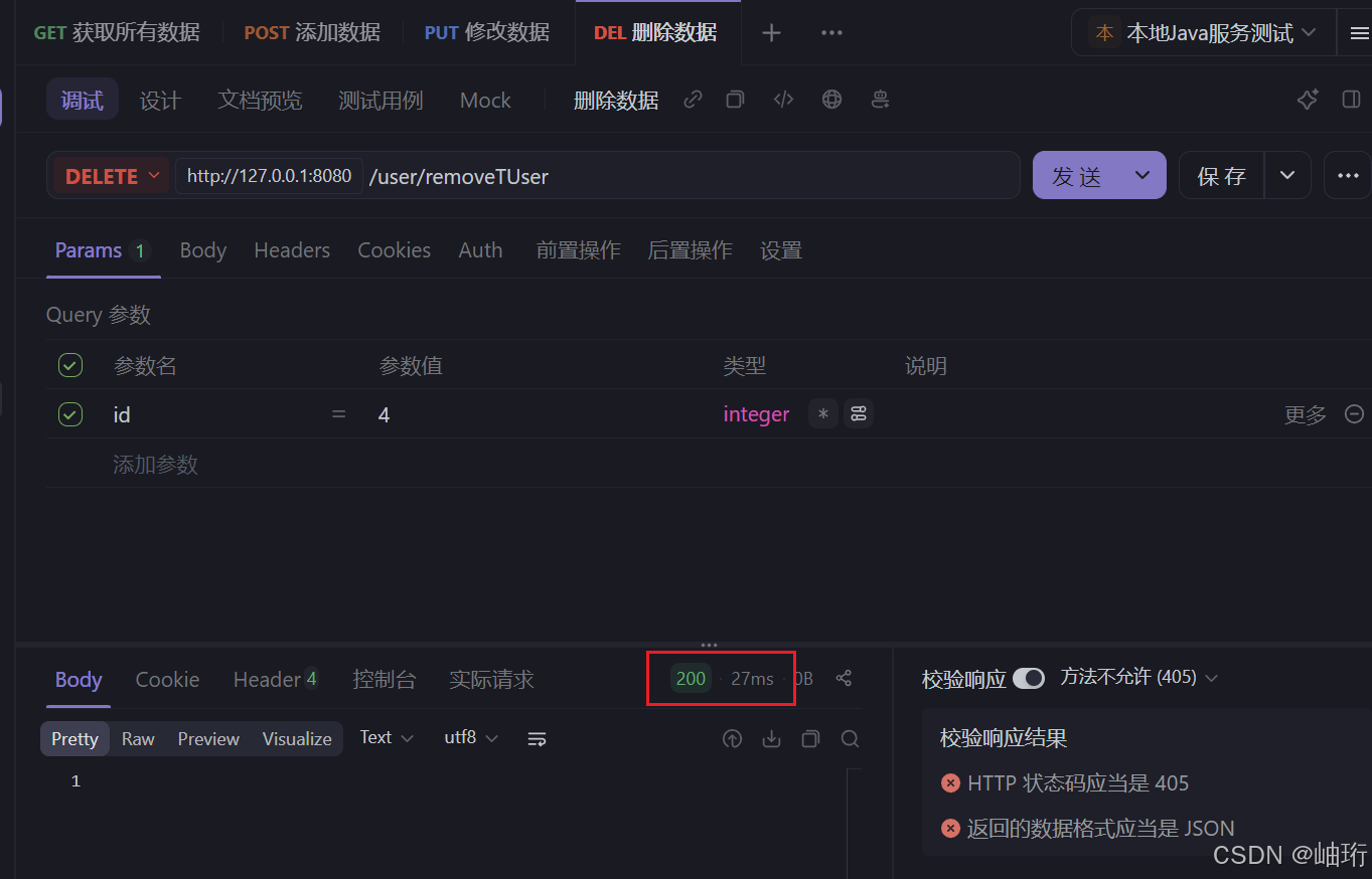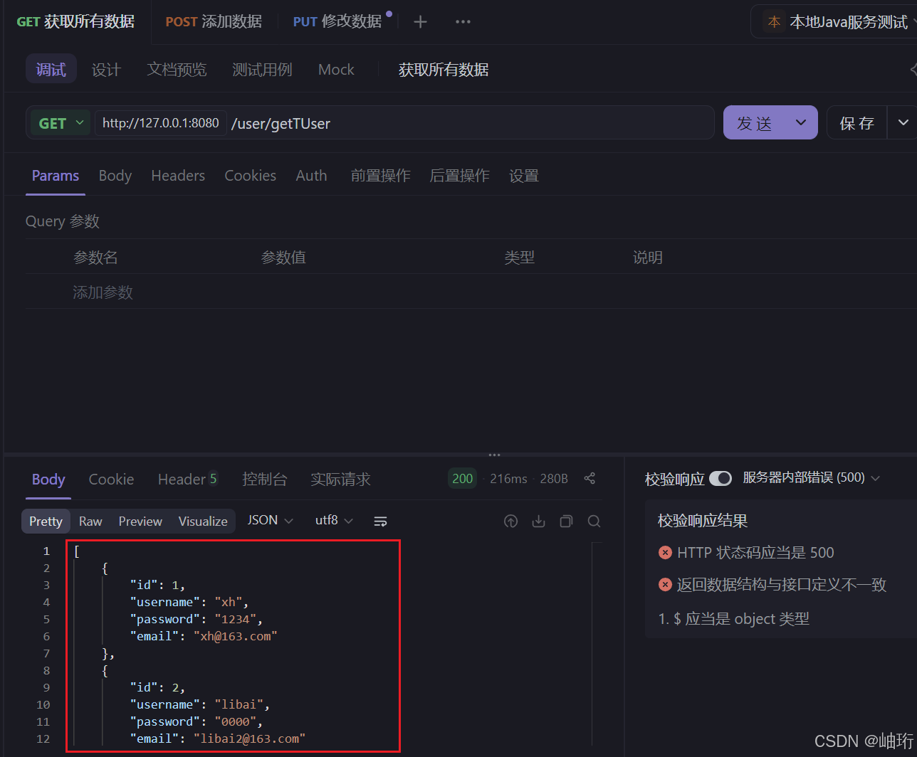 注意,右侧校验响应可以不用管,这里因为请求返回的是数组对象,正常应该返回json。