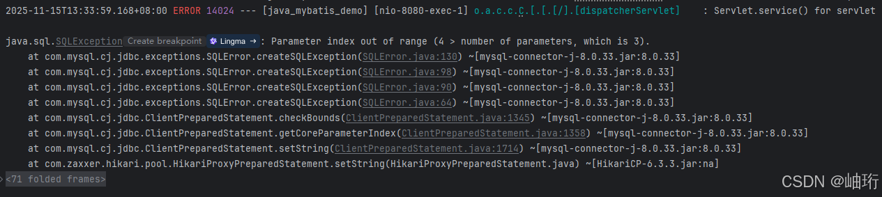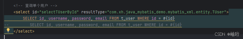 TUserMapper.xml中的sql语句最好不要有注释的行,否则在调用相关sql时会报错,如下