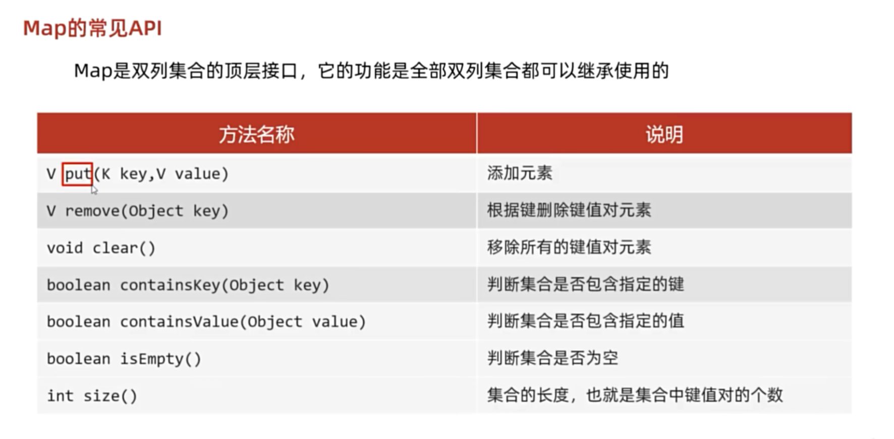 V put(K key , V value) 添加元素