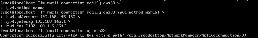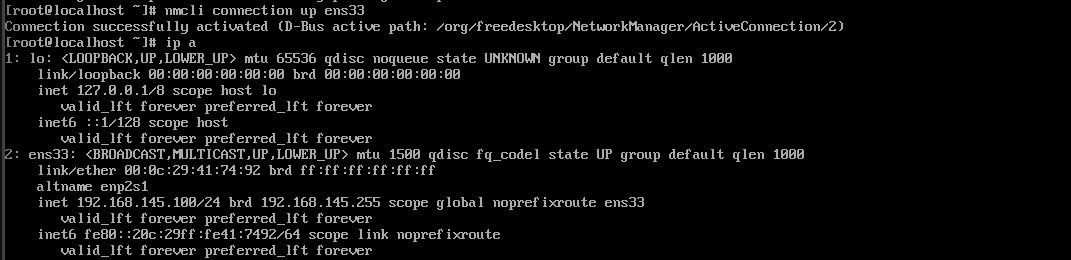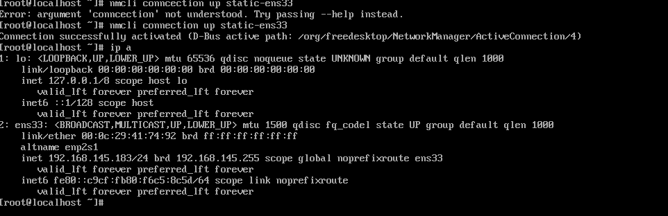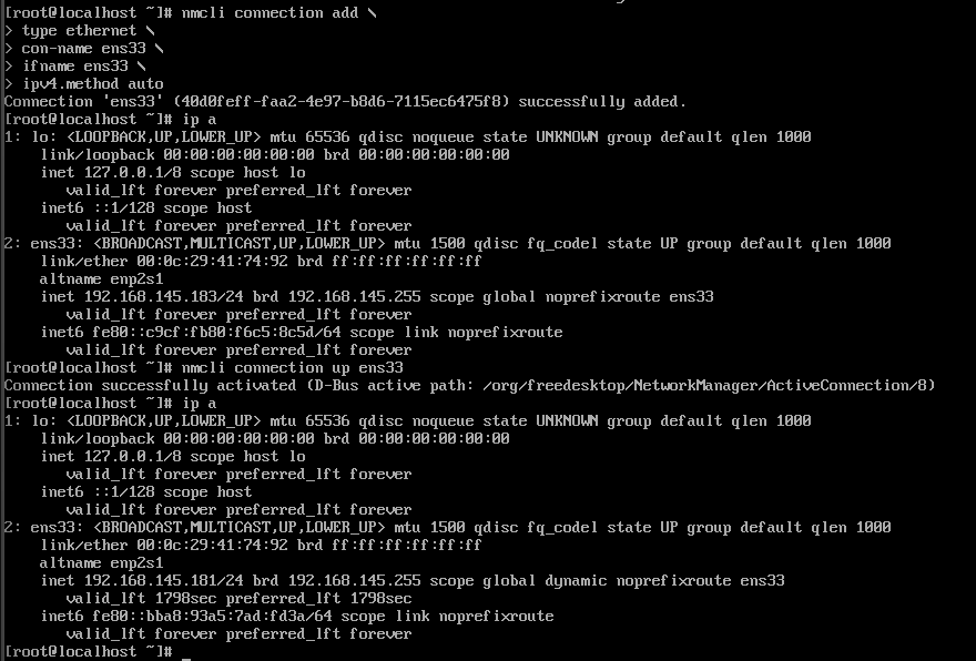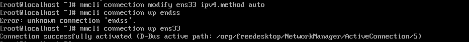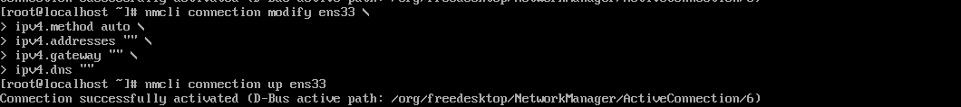 消去之前配的静态ip,改为dhcp协议获取的ip地址并激活网卡: