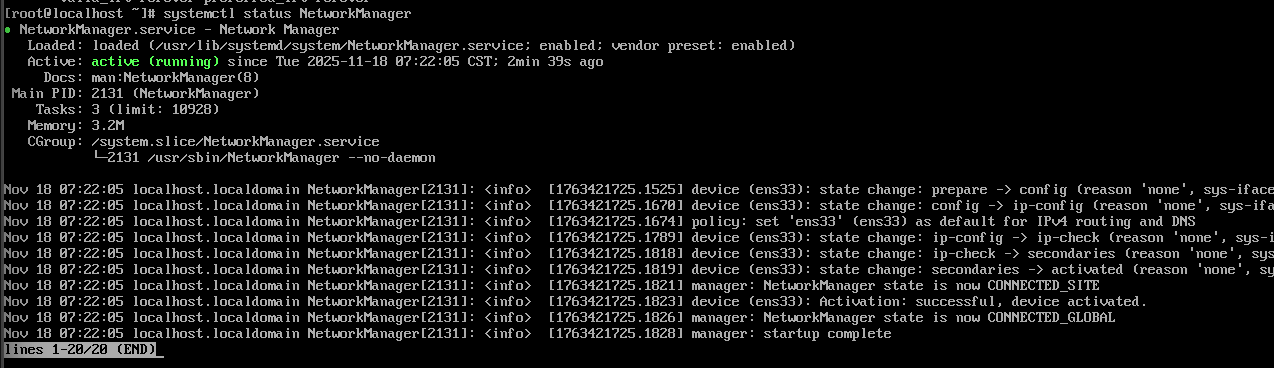 command: systemctl (start/stop/restart/enable/disable) NetworkManager