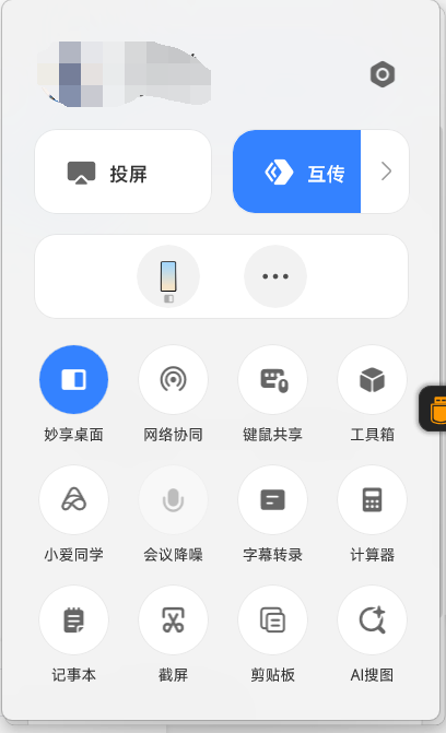 电脑端任务栏会显示「剪贴板」和「控制中心」的图标,打开之后就能看到互联互通相关的功能了。