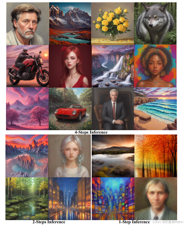这一过程类似"学生(LCM)模仿老师(原始模型)的解题思路",但学生被要求"一步写出答案",而老师则"按步骤推导"。通过海量样本学习,LCM逐渐掌握教师模型的"去噪逻辑",但用更高效的方式实现。