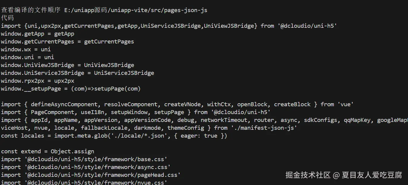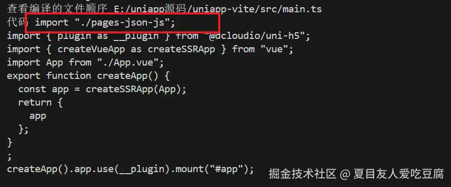 路径和vite的入口文件一致,都是从@/src/main.ts开始。main.ts经过h5-manifest-json插件的作用,编译结果如下图: