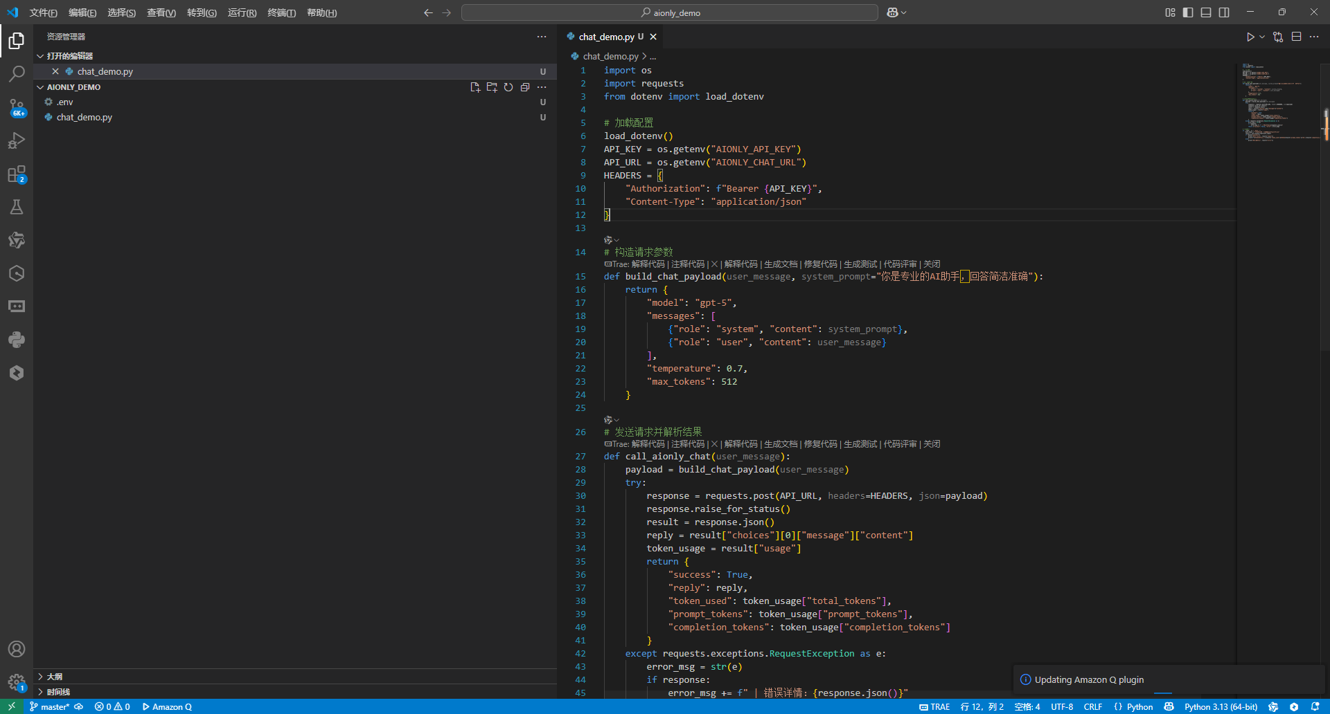 .env文件,内容如下:envAIONLY_API_KEY=你的API密钥 AIONLY_CHAT_URL=https://api.aiionly.com/v1/chat/completions