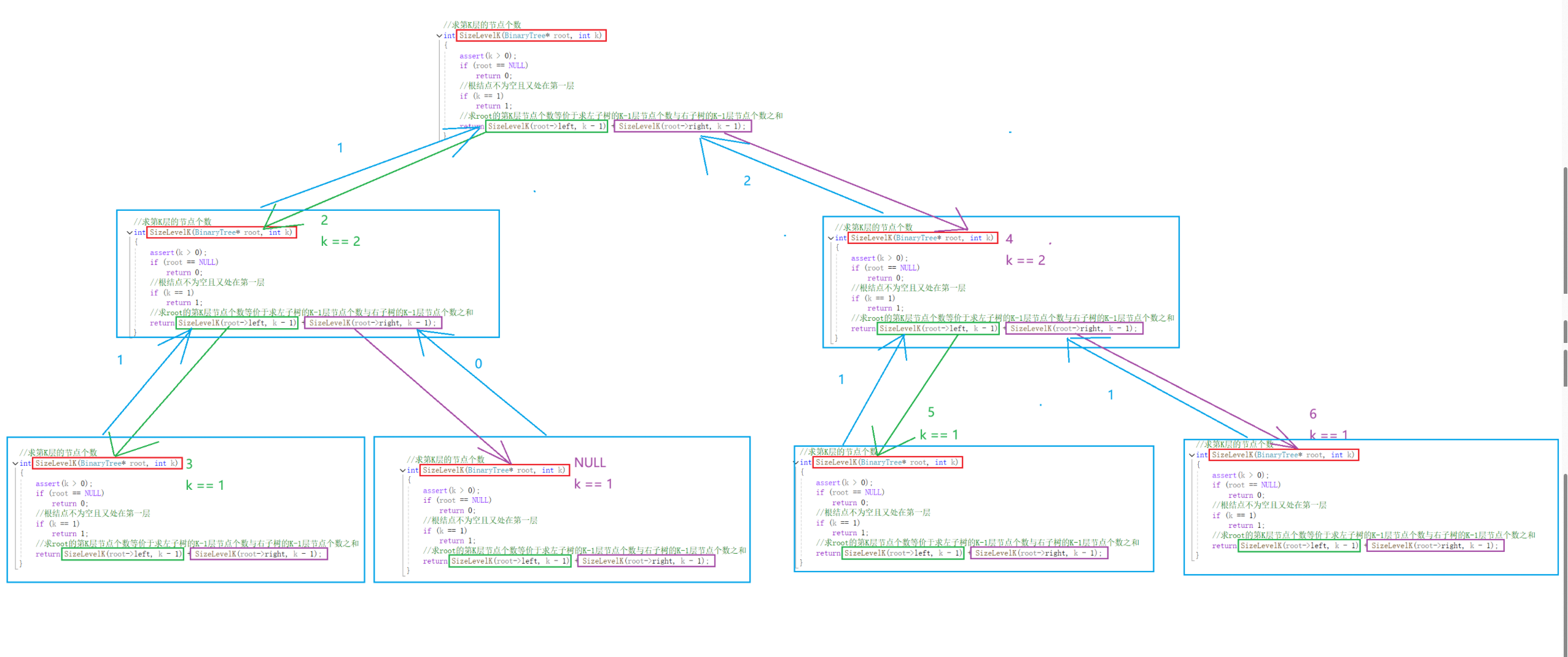 //求root的第K层节点个数等价于求左子树的K-1层节点个数与右子树的K-1层节点个数之和