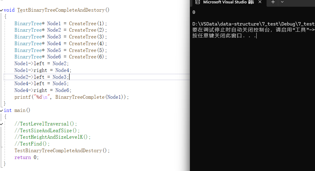 2.3.6:测试判断一棵树是否为完全二叉树与销毁树
