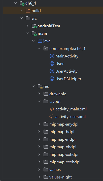 │ │ └── activity_user.xml // 界面布局:输入框+按钮+列表显示