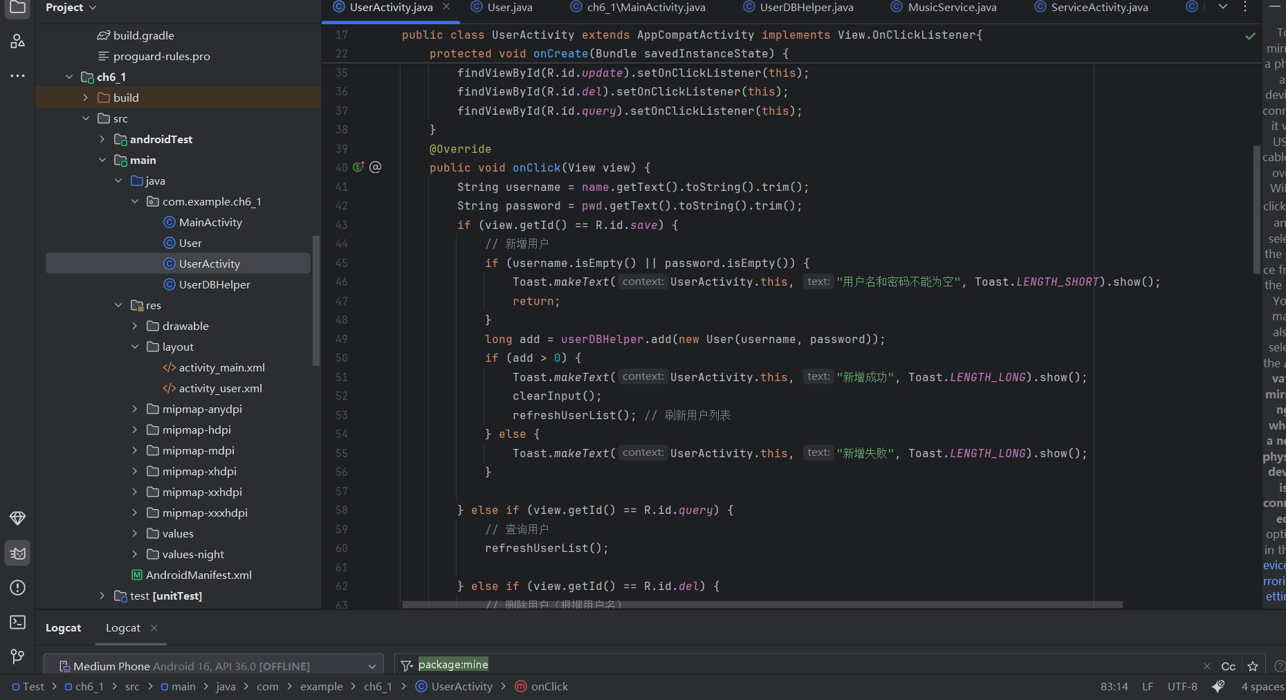 - [3.2 数据库核心:UserDBHelper(SQLiteOpenHelper子类)](#3.2 数据库核心:UserDBHelper(SQLiteOpenHelper子类))