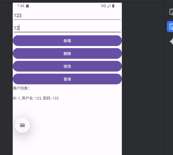SQLite是Android原生支持的关系型数据库,无需额外安装,占用资源少、操作简单,非常适合存储本地结构化数据。本文将基于Android Studio + 模拟器环境,通过"实体类→数据库助手→界面交互"的完整流程,实现用户信息的新增、查询、修改、删除(CRUD) 功能,最终完成一个可直接运行的本地数据库系统。
