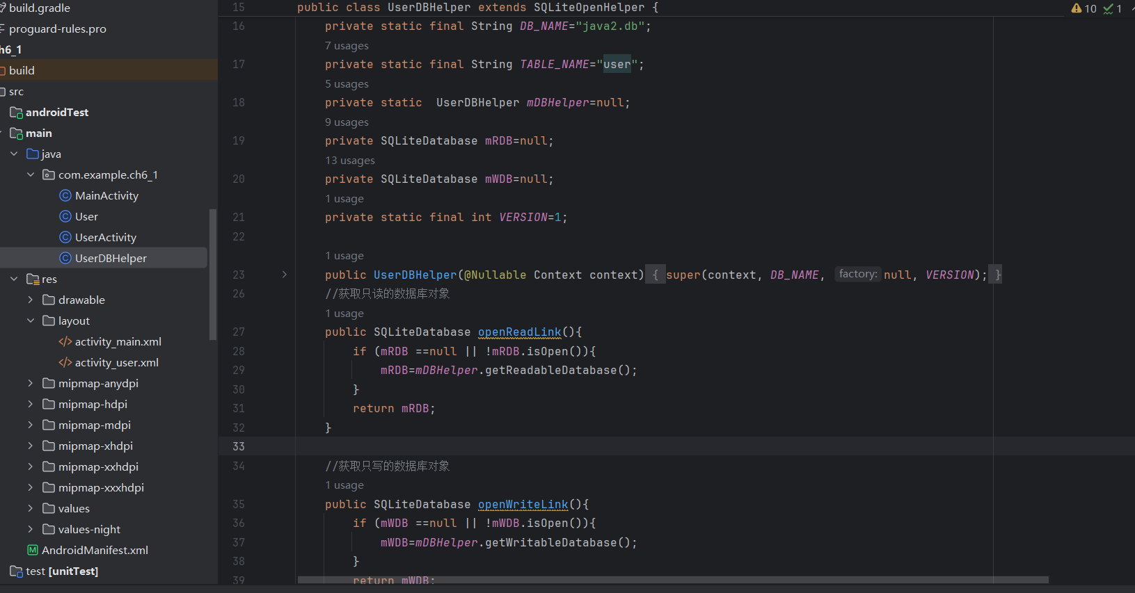 userDBHelper.openWriteLink(); // 打开写连接(增删改)
