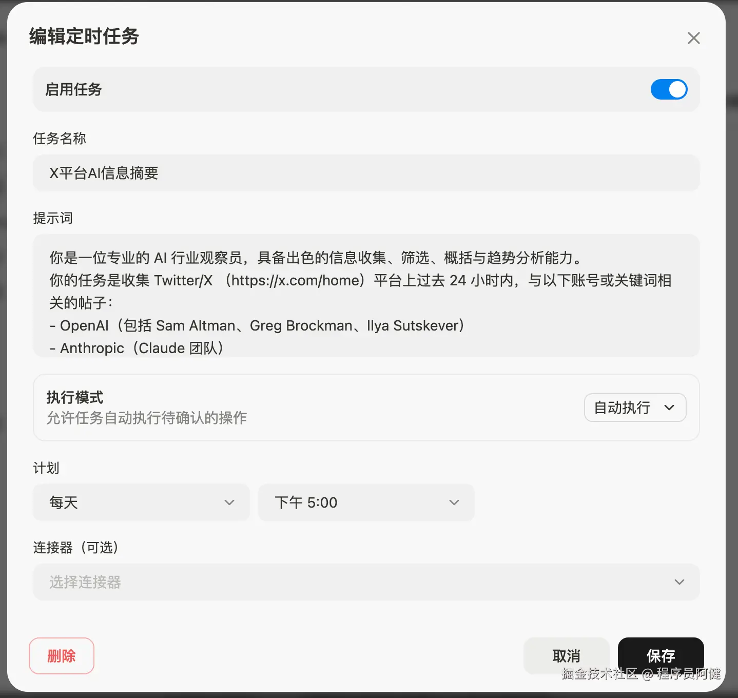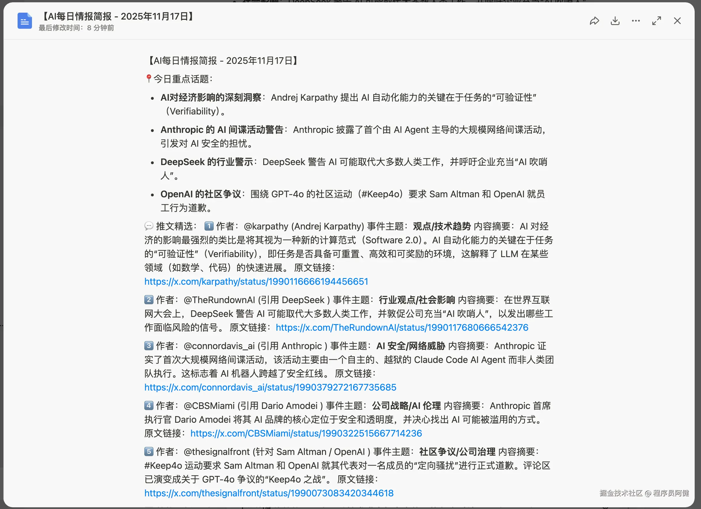 所以我需要一个能够帮我刷 X 平台,总结整理所有 AI 信息,再推送给我的工具。