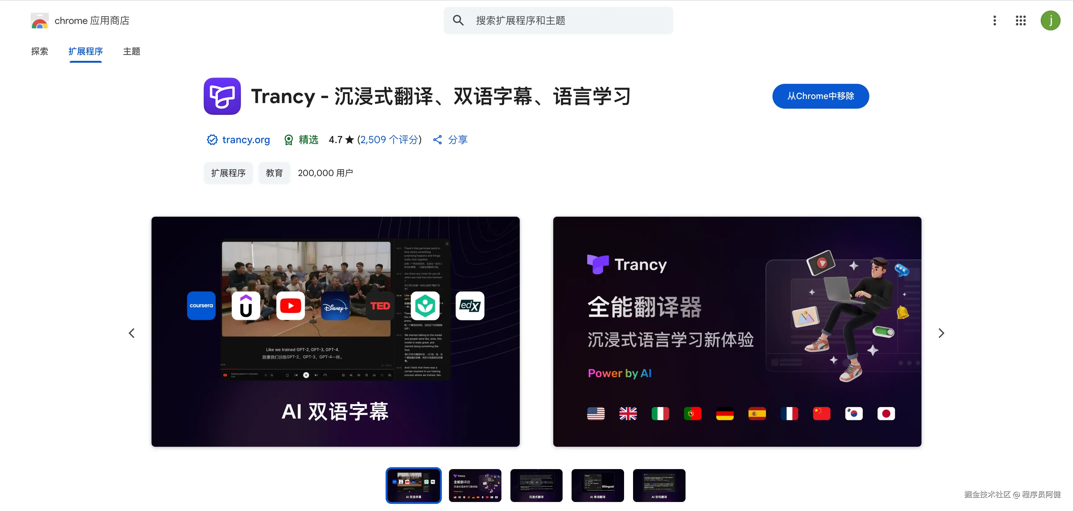 这里推荐一个实时翻译 YouTube 视频字幕的 Chrome 浏览器插件:Trancy。在对比了沉浸式翻译,简易翻译等工具后,这个使用体验最好。