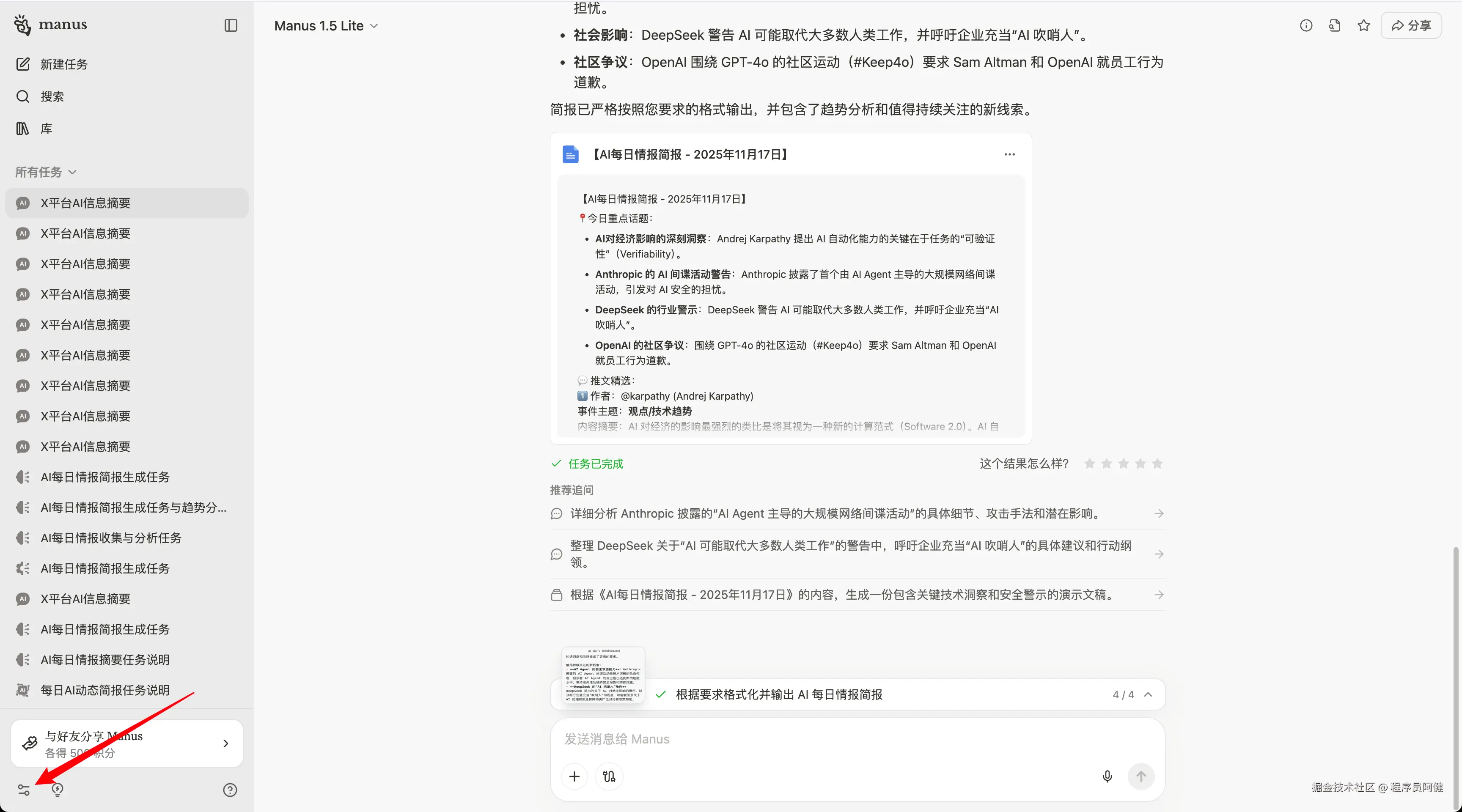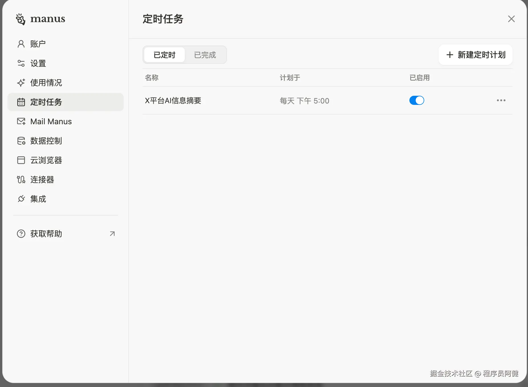 这样通过规划提示词和定时任务功能,Manus 就会每天自动给我推送一份《AI 每日简报》。