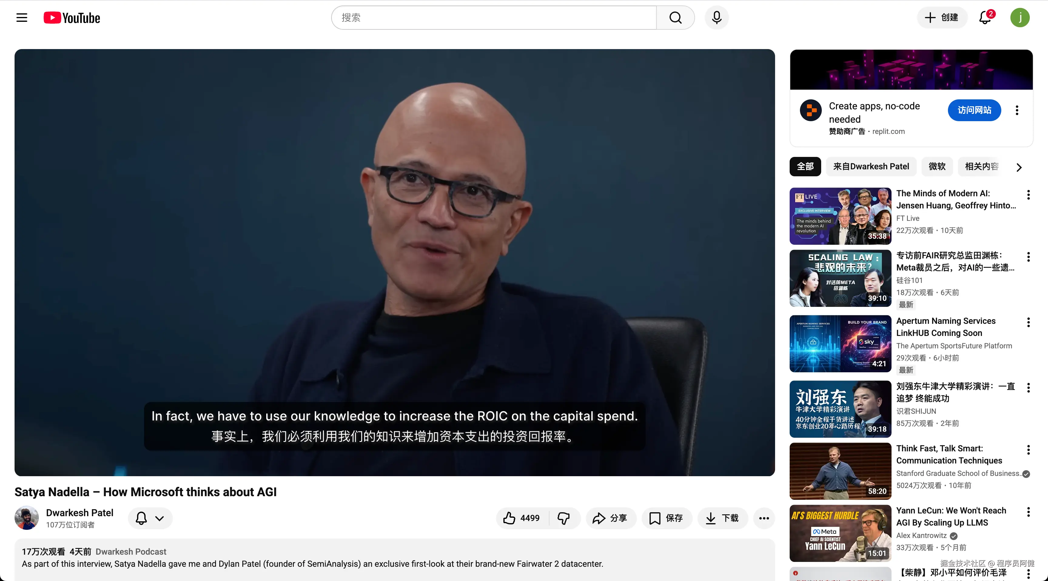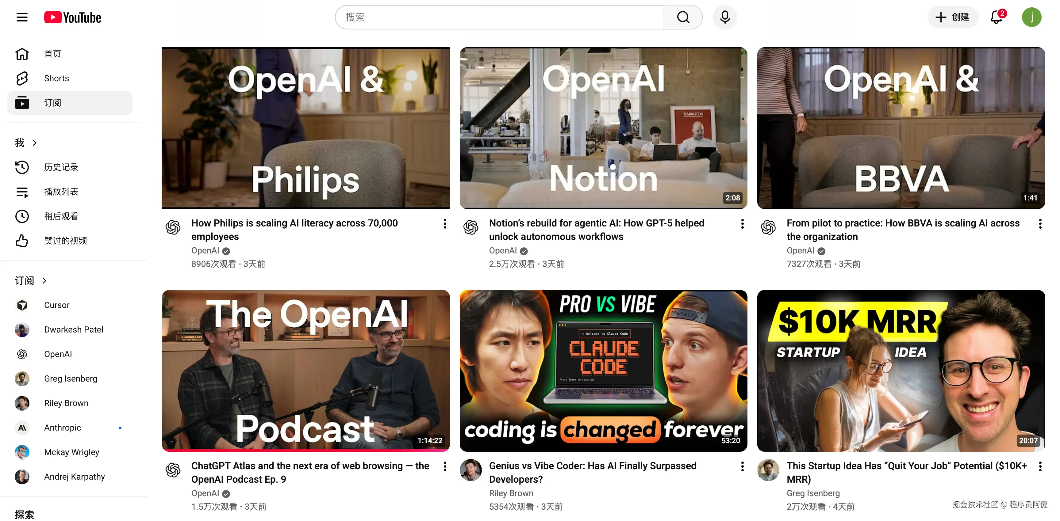 YouTube 上有大量优质、免费的 AI 深度内容,推荐一些我常看的频道: