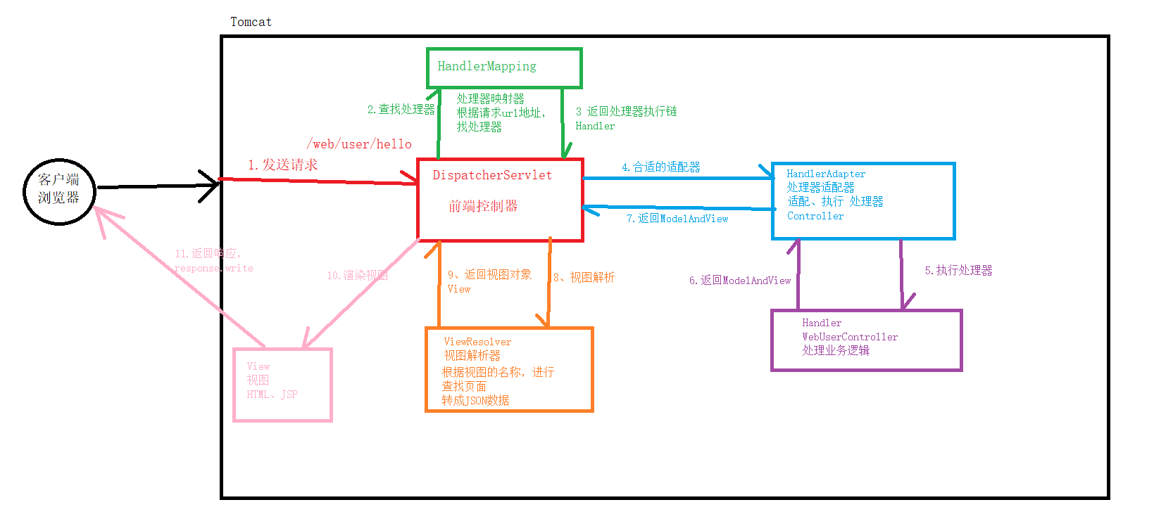 * @RequestMapping("/hello") 浏览器 /web/user/hello 找到当前方法