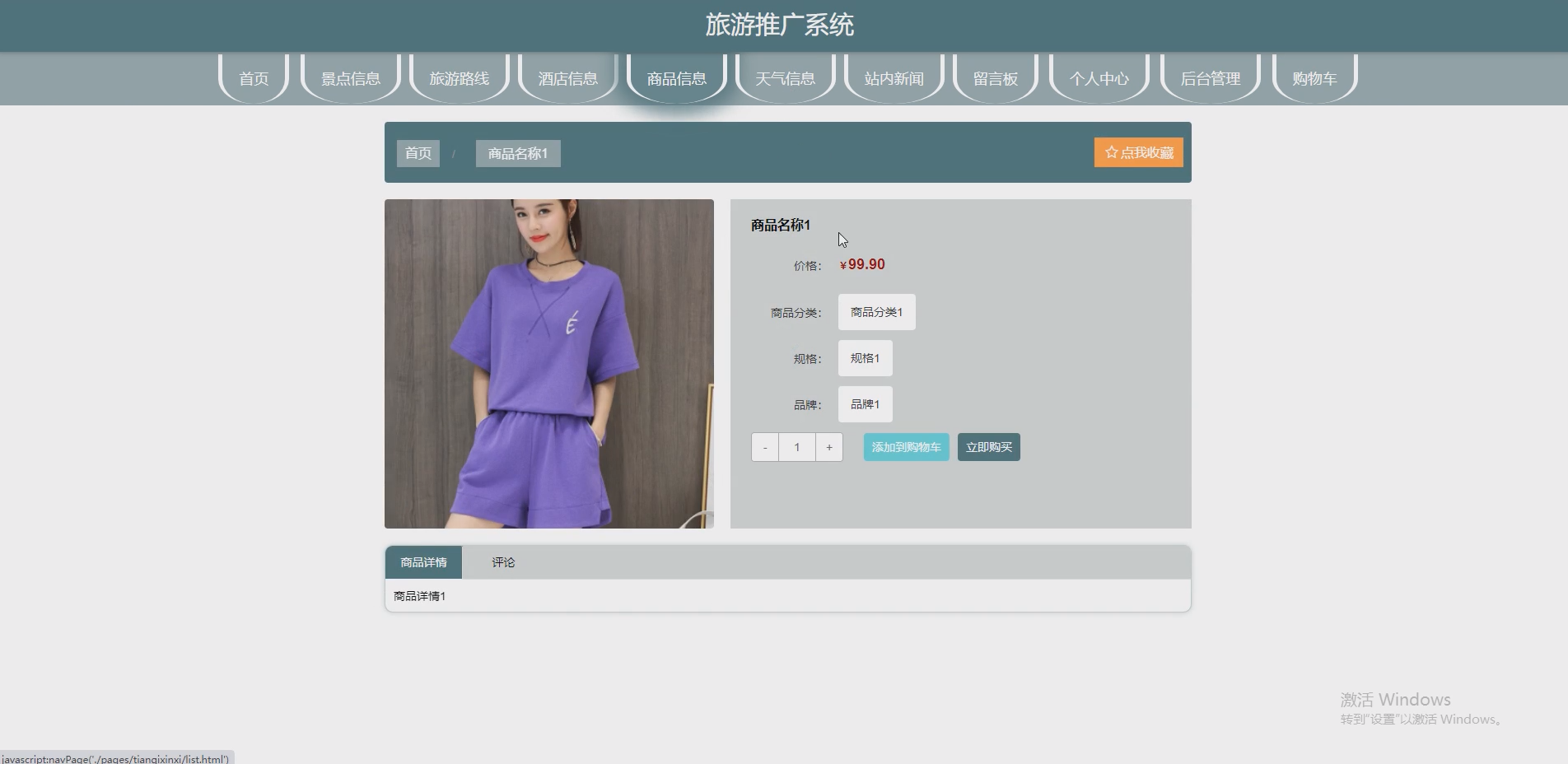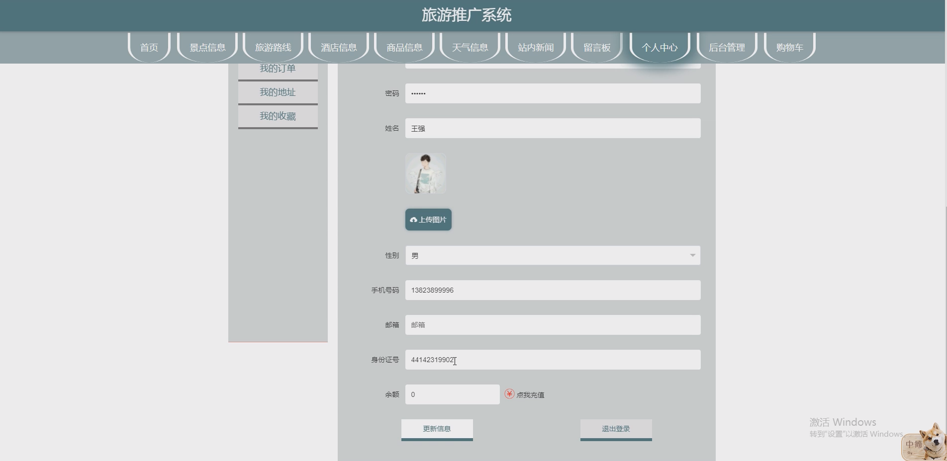 系统项目功能有:用户,景点信息,旅游路线,酒店信息,酒店预订,商品分类,商品信息,系统简介,天气信息