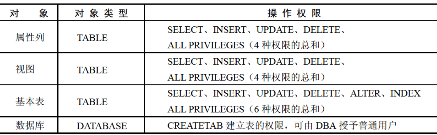- 各种操作对象对应的操作权限: