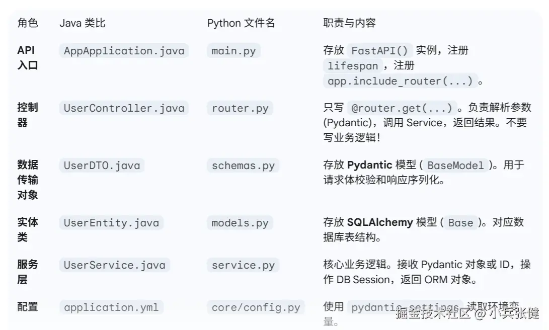 └── pyproject.toml # 依赖管理 (Poetry / Maven pom.xml)