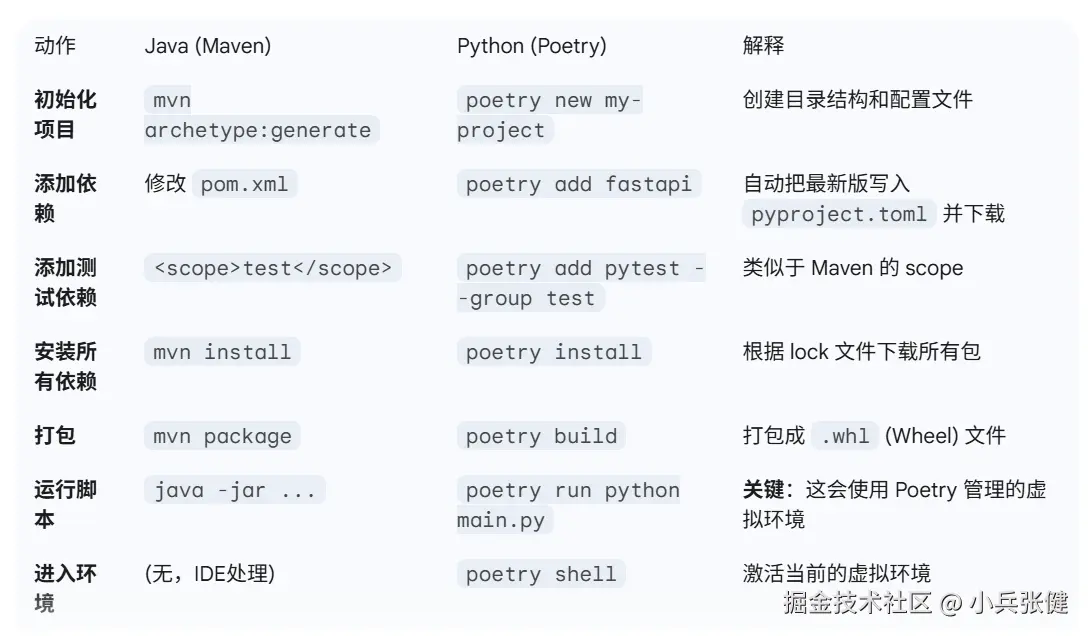 Maven 和 Poetry 命令对比