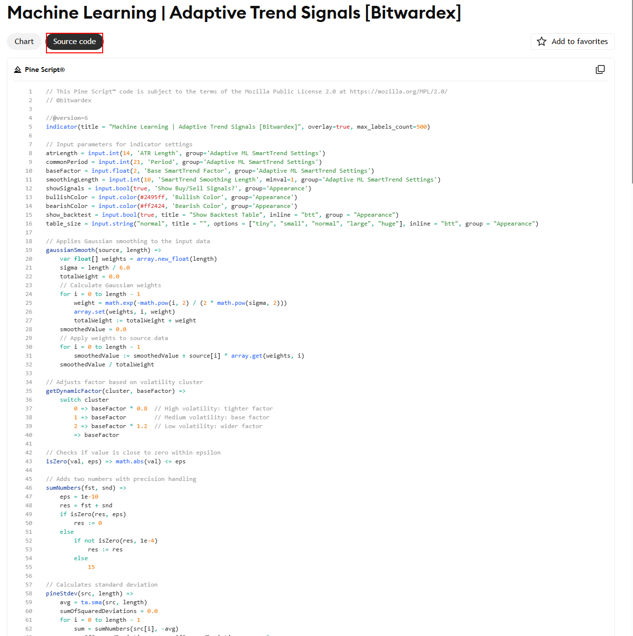 有球友分享了 tradingview上的一个机器学习策略,根据市场波动状态智能调整趋势因子,波动率自适应,多重滤波,胜率达到88%,效果很不错。这个平台最大的优点就是可以直接查看策略的源码,虽然是用他特有的Pine Script脚本编写的源代码。还可以看到全球交易者发布的实时分析,带有技术指标和绘图的图表,有文字解释交易逻辑和策略依据。