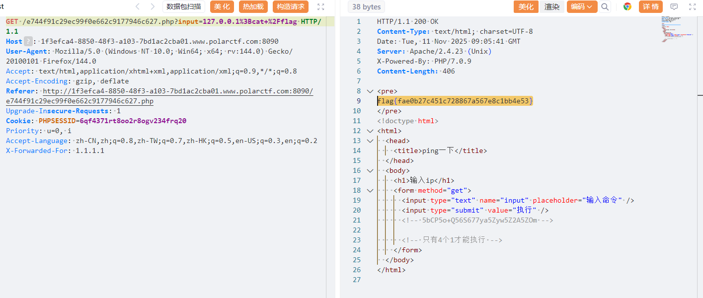 看源码得知有隐藏的输入框,直接抓包就行,初步尝试后发现有过滤过滤了 / cat index