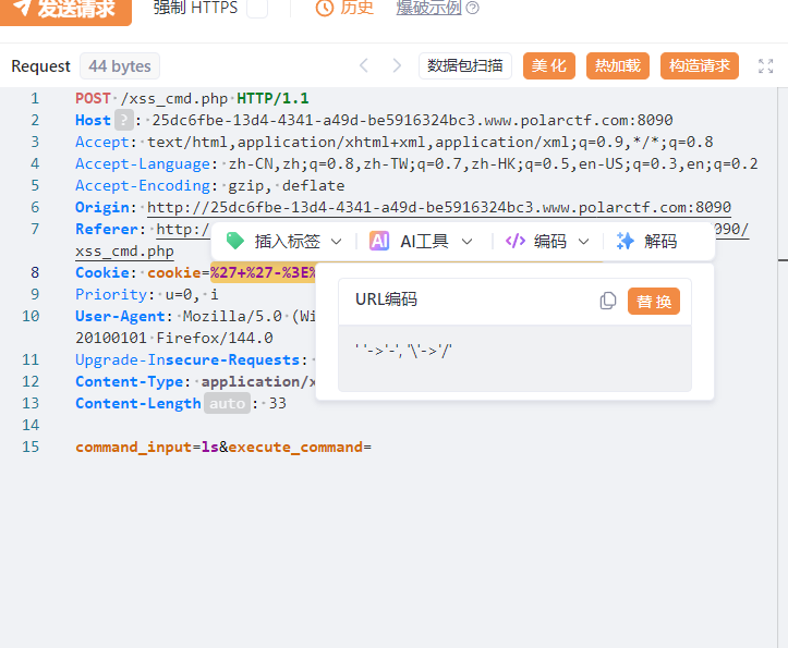 这在cookie有个替换空格换成-,/换成\\,那么命令就成了ls-\\
