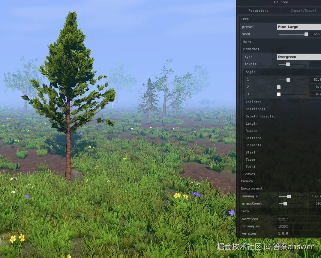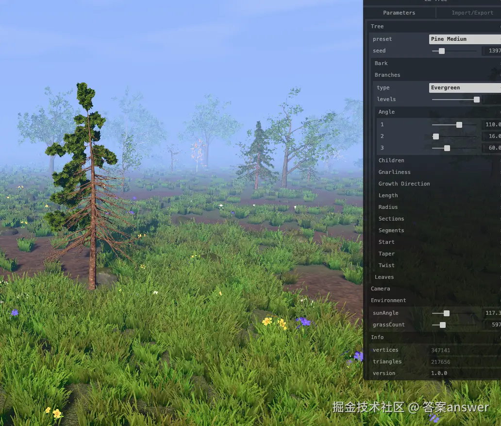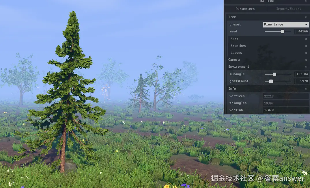 分享一个基于Three.js封装的树生成器插件,可以实现创建不同类型且渲染效果真实的3D树