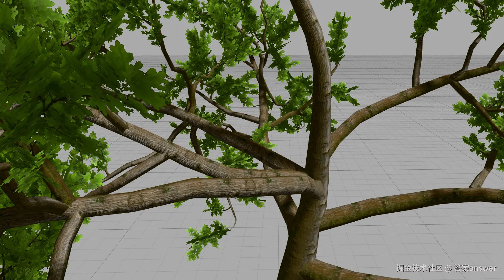 将相机放大查看树渲染的效果细节处理个人觉得是非常nice的,十分真实